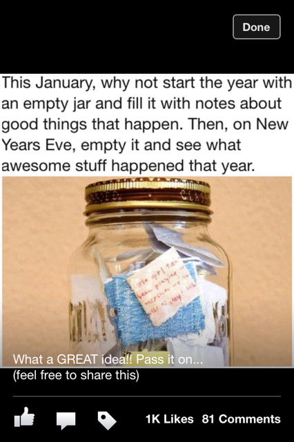 My friend shared a great idea with me for the New Year—to start a Blessing Jar! This is a jar in which you can place the blessings, good things, laugh-out-loud moments, & more that happen throughout the year! Just write the blessings/events/etc. on a piece of paper & add to the jar as these things happen (I’m going to include the date on my blessings as well). At the end of the year, you can go back & review all that God has blessed you with this year! What a great way to focus on Him & all His goodness!